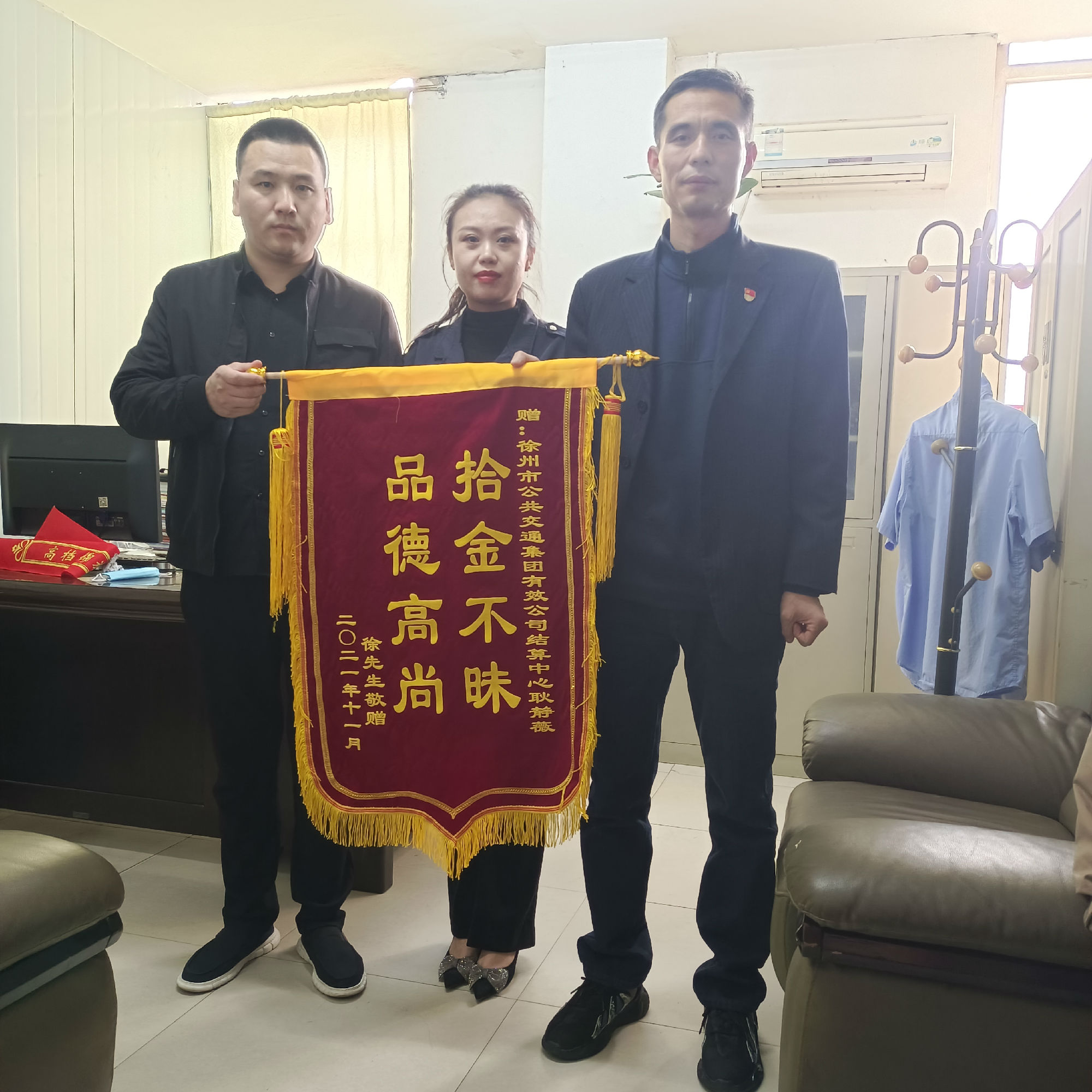 原來11月2日早上,結算中心職工耿靜薇在上班途中,經(jīng)過夾河街路口時,無意中發(fā)現(xiàn)一個黑色手包,等待許久未見失主前來尋找,便將手包帶到了公司。經(jīng)檢查,包內(nèi)有銀行卡,手機及部分現(xiàn)金,但未找到任何聯(lián)系方式,這時失主的手機鈴聲響起,傳來了失主焦急的聲音。不一會兒,失主徐先生趕到結算中心,領回了物品。次日,徐先生特意送來錦旗,并表示衷心的感謝!