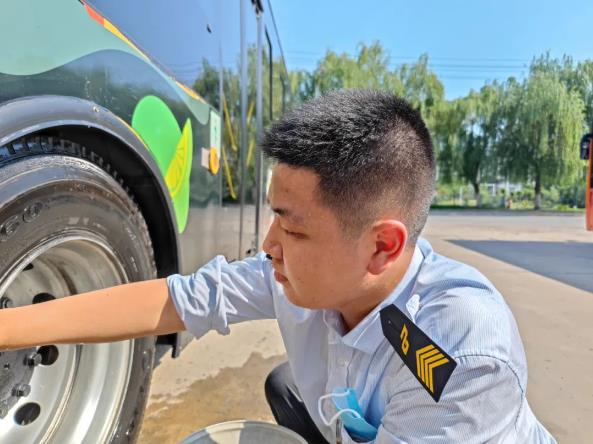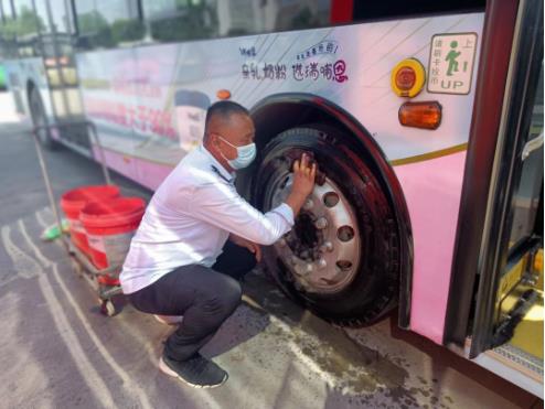 “衣服都濕透了,別弄了,先歇歇吧。”“沒事,我把衛(wèi)生弄好了就去?!?.....眼前這個小伙是603路的張?zhí)祧危弥萃r間,他一邊用布擦拭著輪轂,一邊用手擦拭臉上的汗珠。忙完后,發(fā)現(xiàn)發(fā)車時間已到,他立即回到駕駛室,等待乘客的到來和發(fā)班指令,沒來得及喝上一口水。