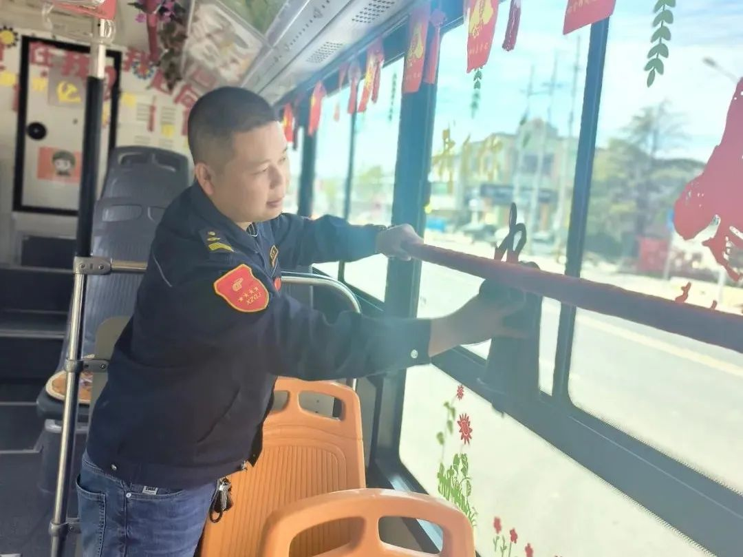 為了給乘客一個(gè)舒適的乘車環(huán)境,他總是想辦法把車輛布置得很溫馨。冬天他在車上張貼了紅色的窗花,在扶手上纏上暖暖的紅絲絨。春天張貼了柳葉、花草,讓車廂充滿春天的氣息。為了讓大家感受到雷鋒精神,他在車內(nèi)制作了以雷鋒精神為主題的標(biāo)語、拉手,在車前放置了便民箱,為乘客提供暈車藥、創(chuàng)可貼、針線包等物品。為慶祝建黨百年,王石龍把車廂裝扮成紅色宣傳車,添置了紅色小人書,自費(fèi)做了燈箱畫報(bào),并放置了醫(yī)藥箱、便民袋。在他的車廂里,可以讀到軍隊(duì)十大英模人物和雷鋒的先進(jìn)事跡,可以閱覽無償獻(xiàn)血宣傳畫報(bào)。今年國(guó)慶前期,王石龍自費(fèi)購買了小禮物贈(zèng)與乘客,在清華中學(xué)定制公交上,王石龍還與同學(xué)生們一起,揮舞著國(guó)旗,共同慶祝祖國(guó)母親73歲華誕。