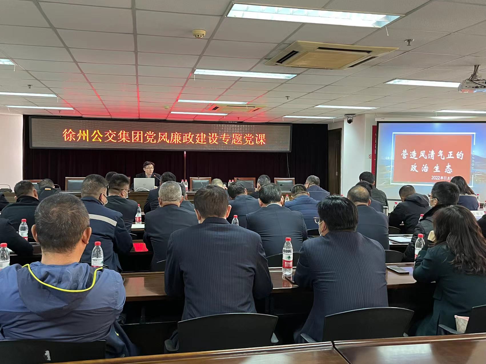 為深入學(xué)習(xí)貫徹落實(shí)黨的二十大精神,堅定不移推進(jìn)全面從嚴(yán)治黨向縱深發(fā)展,營造集團(tuán)風(fēng)清氣正的政治生態(tài),11月17日,徐州公交集團(tuán)開展黨風(fēng)廉政建設(shè)專題黨課。公交集團(tuán)黨委副書記、總經(jīng)理袁夫松主持會議,集團(tuán)機(jī)關(guān)部室、基層單位負(fù)責(zé)人等50余人參加學(xué)習(xí)。