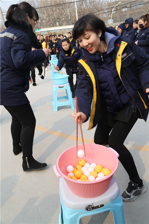 “穿針引線(xiàn)接力賽”和“夾乒乓球比賽”比較有意思,項(xiàng)目充分展現(xiàn)了女工們心思細(xì)膩的一面和嫻熟的家務(wù)活兒功底。手捏繡花針,穿針引線(xiàn),筷子夾乒乓球,分明是練“炸丸子”嘛。參賽隊(duì)員情緒飽滿(mǎn),勠力同心,密切配合,氣氛歡快熱烈而緊張,一場(chǎng)場(chǎng)精彩的比拼把運(yùn)動(dòng)會(huì)推向一個(gè)又一個(gè)高潮。尤其是最后一項(xiàng)“搶板凳比賽”,看誰(shuí)反應(yīng)快,比誰(shuí)會(huì)“搶”,快樂(lè)有趣,更是引來(lái)一次次加油喝彩,一波又一波歡聲笑語(yǔ)!
