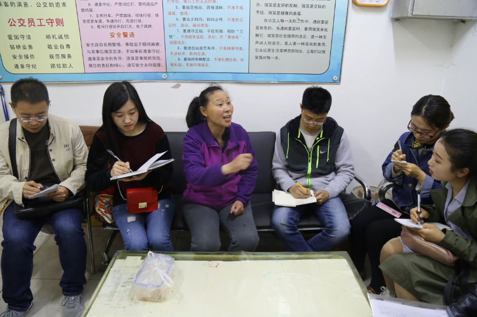孫師傅發(fā)車了,通訊員們在跟車采訪環(huán)節(jié),仔細觀察、記錄孫師傅在行車中的“一舉一動”,尋找采訪細節(jié)。在孫師傅休停時,大家紛紛拿出相機、手機,切磋拍照經(jīng)驗。為達到培訓目的,采訪前要求通訊員們通過認真思考,提前擬定好了采訪提綱,現(xiàn)場采訪環(huán)節(jié),通訊員們積極踴躍根據(jù)自己擬定好的問題對孫師傅提問,并認真記錄。通訊員“現(xiàn)場練兵”在輕松愉快的氣氛中結(jié)束了,大家表示這種培訓形式有趣有收獲。