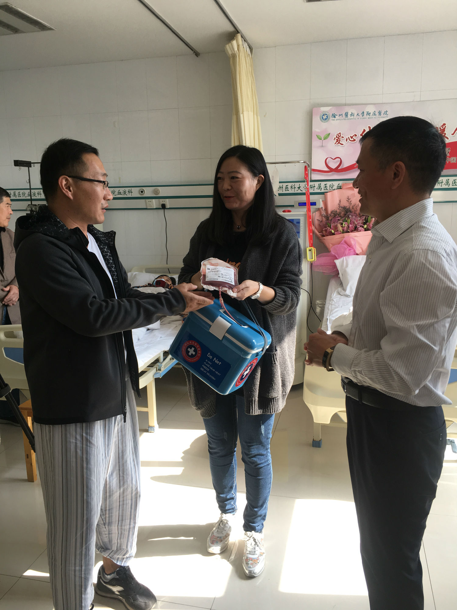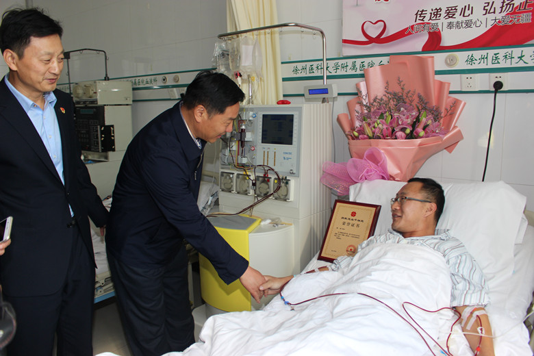 自7月底接到通知的這段時(shí)間,鄭剛一直積極配合著,希望保持最佳的身體狀態(tài)進(jìn)行捐獻(xiàn)。他努力克制自己,戒煙戒酒,鍛煉身體,增加高營(yíng)養(yǎng)的飲食調(diào)理。喝不慣牛奶的他甚至強(qiáng)迫著自己一天喝兩包奶。國(guó)慶節(jié)幾天,他突然感冒發(fā)低熱,竟忍著沒敢吃藥……鄭剛所在的單位也給予了大力的支持和配合,10月25日入院,徐州公交為他舉辦了隆重的歡送儀式,董事長(zhǎng)、總經(jīng)理杜紅軍等領(lǐng)導(dǎo)給他送來了慰問金,安排好他的休息時(shí)間。