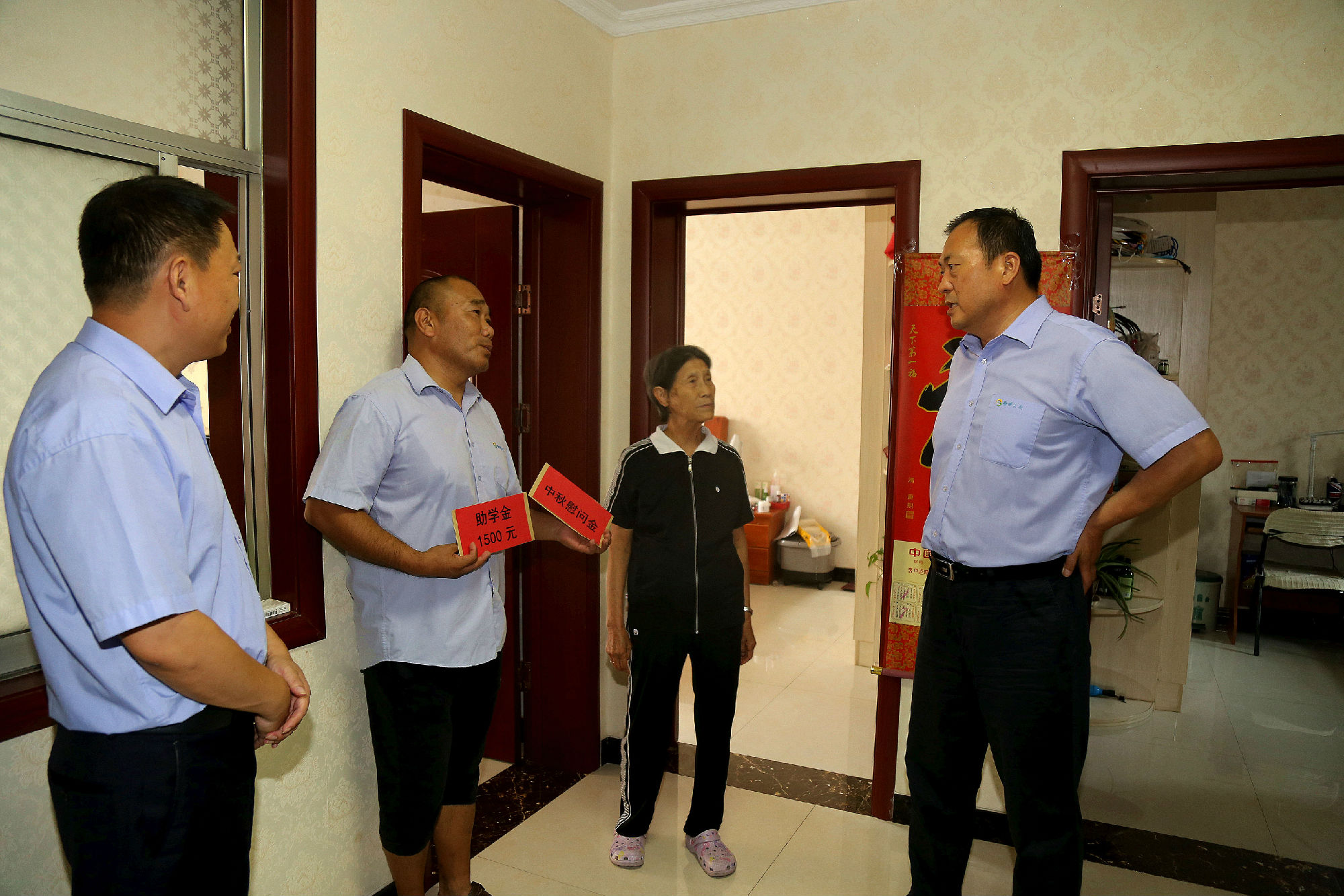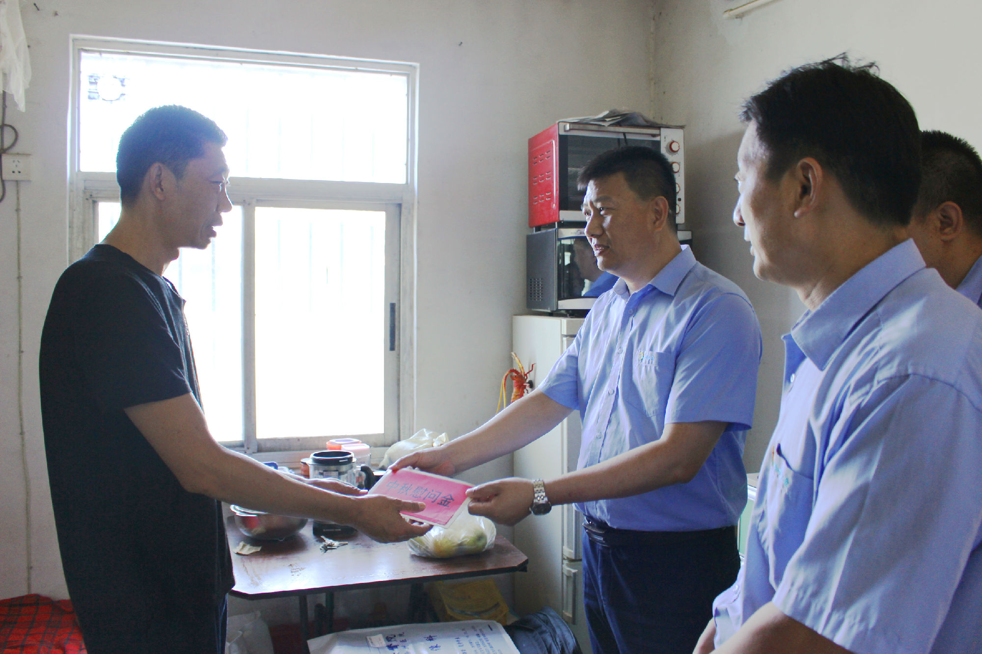 公司領(lǐng)導(dǎo)慰問組分赴困難職工家中、醫(yī)院,與他們親切交談,了解他們的工作、生活及家中成員狀況和困難情況,同時(shí)為他們送去了中秋節(jié)慰問金、助學(xué)金及中秋祝福。