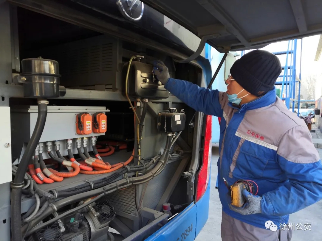 針對氣溫驟降,集團(tuán)積極做好車輛機(jī)務(wù)保障工作,提前對柴油車輛及安裝燃油水暖加熱系統(tǒng)的純電動車輛更換低標(biāo)號柴油,防止出現(xiàn)結(jié)臘現(xiàn)象;做好管路防凍工作,對車輛的氣路管路、儲氣筒徹底放氣、放水;為了預(yù)防車輪制動蹄片與制動鼓、輪胎與地面之間出現(xiàn)冰凍現(xiàn)象,各單位要求駕駛員在出車前提前開啟車載空調(diào)暖風(fēng)設(shè)備,收車后做好車輛駐車停放工作。同時,在每個車場安排專人值守并做好修理人員、充電工的防寒保暖工作。