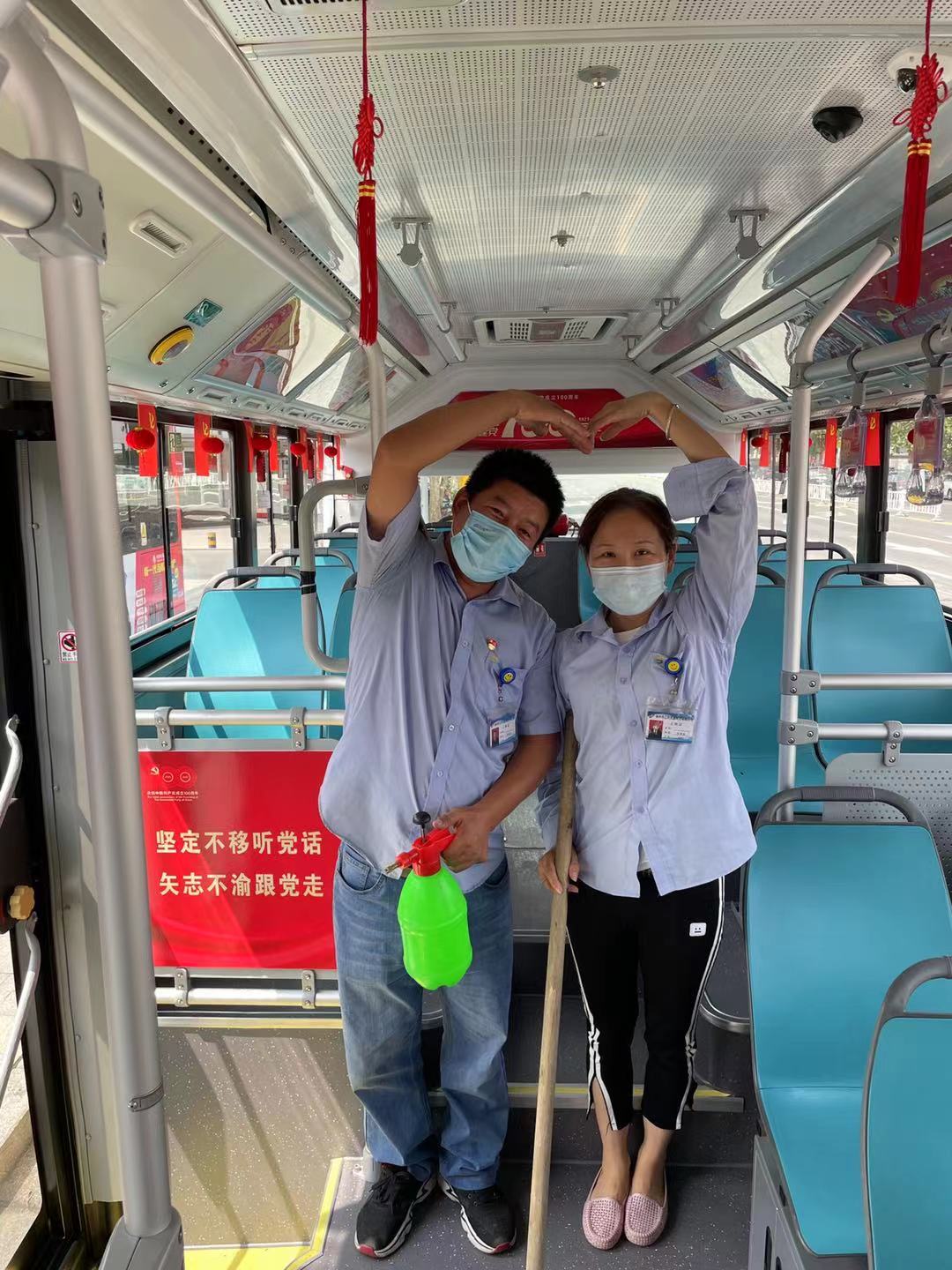 自新冠肺炎疫情爆發(fā)以來,每天出車前,劉艷軍、周莉都會嚴格執(zhí)行各項車輛消毒措施,對車廂進行全方位、無死角的消殺、清潔,為乘客提供衛(wèi)生、安全的乘車環(huán)境。他們用行動守護平安,為防疫奮力拼搏,為全面打贏疫情防控阻擊戰(zhàn)貢獻力量。