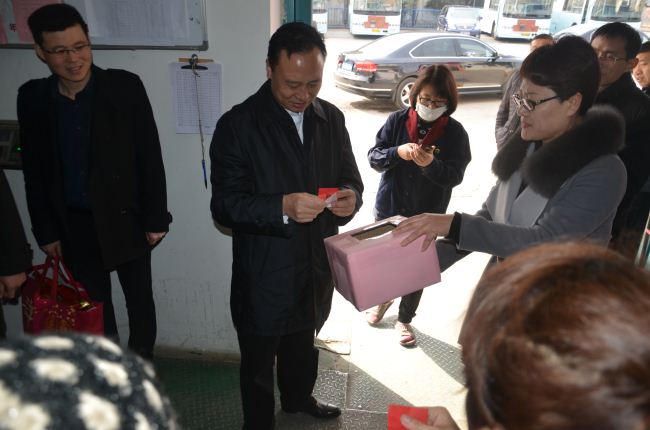大年初一早晨,市交通運輸局局長蔡前鋒來到公交結(jié)算中心,向公交員工拜年。蔡局長饒有興致地參加了公交結(jié)算中心舉辦的迎新春“洋洋得意”抽大獎迎禮品活動。