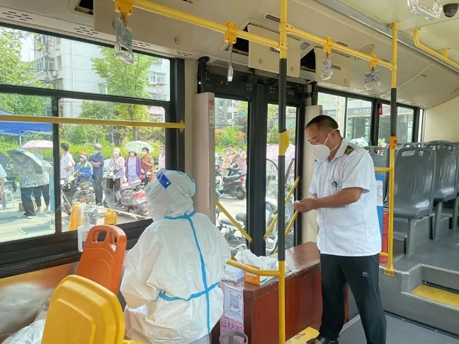 “排好隊,保持一米線距離,準備好核酸檢測碼。”1路駕駛員黃勇在烈日下維護核酸檢測現(xiàn)場秩序,看到排隊檢測的市民們在太陽下曬著,他主動將臨時棚移動到等待區(qū),讓排隊的市民不被太陽爆曬。排隊等待檢測人員少時,他又主動幫助醫(yī)護人員整理相關(guān)物品,“黃師傅人老實又勤快,一刻也閑不住,我們都喜歡和他搭檔。”社區(qū)工作人員說道。