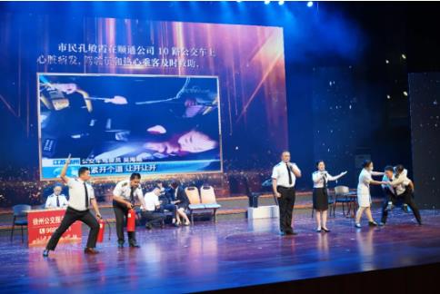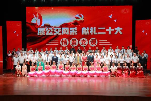 為激勵廣大黨員群眾以實際行動迎接黨的二十大勝利召開,8月10日下午,徐州公交集團成功舉辦“展公交風采 獻禮二十大”情景黨課。市交控集團黨委委員、紀委書記胡濤,市交通運輸局宣傳教育處處長高夫健,徐州廣播電視傳媒集團總編室主任劉建玲,市公交集團外部董事,市交控集團黨建工作部、群眾工作部部門領導,以及公交集團黨委班子成員、先進勞模、職工代表共450余人出席并觀看演出。