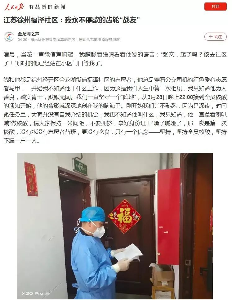 《人民日報(bào)》平臺發(fā)布文章《江蘇徐州福澤社區(qū):我永不停歇的齒輪“戰(zhàn)友 ”
