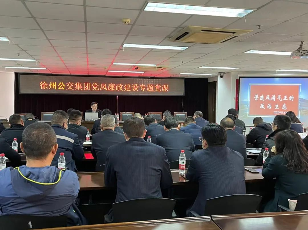 為深入學(xué)習(xí)貫徹落實黨的二十大精神,堅定不移推進(jìn)全面從嚴(yán)治黨向縱深發(fā)展,營造集團(tuán)風(fēng)清氣正的政治生態(tài),11月17日,徐州公交集團(tuán)開展黨風(fēng)廉政建設(shè)專題黨課。公交集團(tuán)黨委副書記、總經(jīng)理袁夫松主持會議,集團(tuán)機關(guān)部室、基層單位負(fù)責(zé)人等50余人參加學(xué)習(xí)。