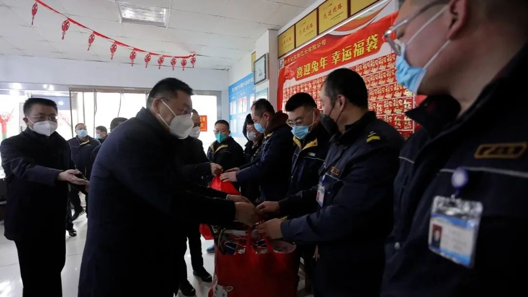“大家辛苦了。今天是大年初一,正是萬家團(tuán)圓的時(shí)刻,你們?yōu)楸U铣鞘姓_\(yùn)行,依然堅(jiān)守在崗位上,我和檀總代表交控集團(tuán)黨委來看望大家,給大家拜年了,祝大家身體健康、闔家歡樂、萬事如意!”在新巴士公司調(diào)度室,賈泉涌與堅(jiān)守崗位的一線駕駛員們逐一握手,對(duì)他們的辛勤付出表示感謝,并送去了節(jié)日的祝福。