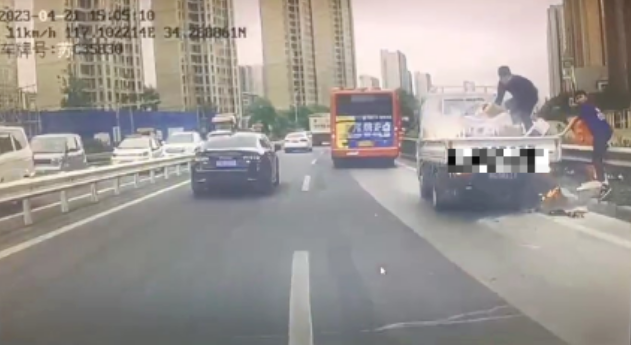 4月21日中午,608路4名駕駛員石守軍、孫晉旭、郝科軍、郝允明駕駛著他們各自的車輛前往火花加氣站進(jìn)行加注燃料,就在返回的途中,忽然看到前方路邊白煙滾滾,當(dāng)距離再靠近一點(diǎn)時(shí)才發(fā)現(xiàn)竟然是一輛小型貨車車廂著火產(chǎn)生的陣陣煙霧,且已經(jīng)有幾個(gè)箱子開始接連燃燒,小貨車駕駛員手里只有一瓶礦泉水,面對(duì)火勢(shì)即將控制不住,這僅有的一瓶水無疑是杯水車薪,無奈之下,貨車司機(jī)只能慢慢地將著火的紙箱搬下車廂。