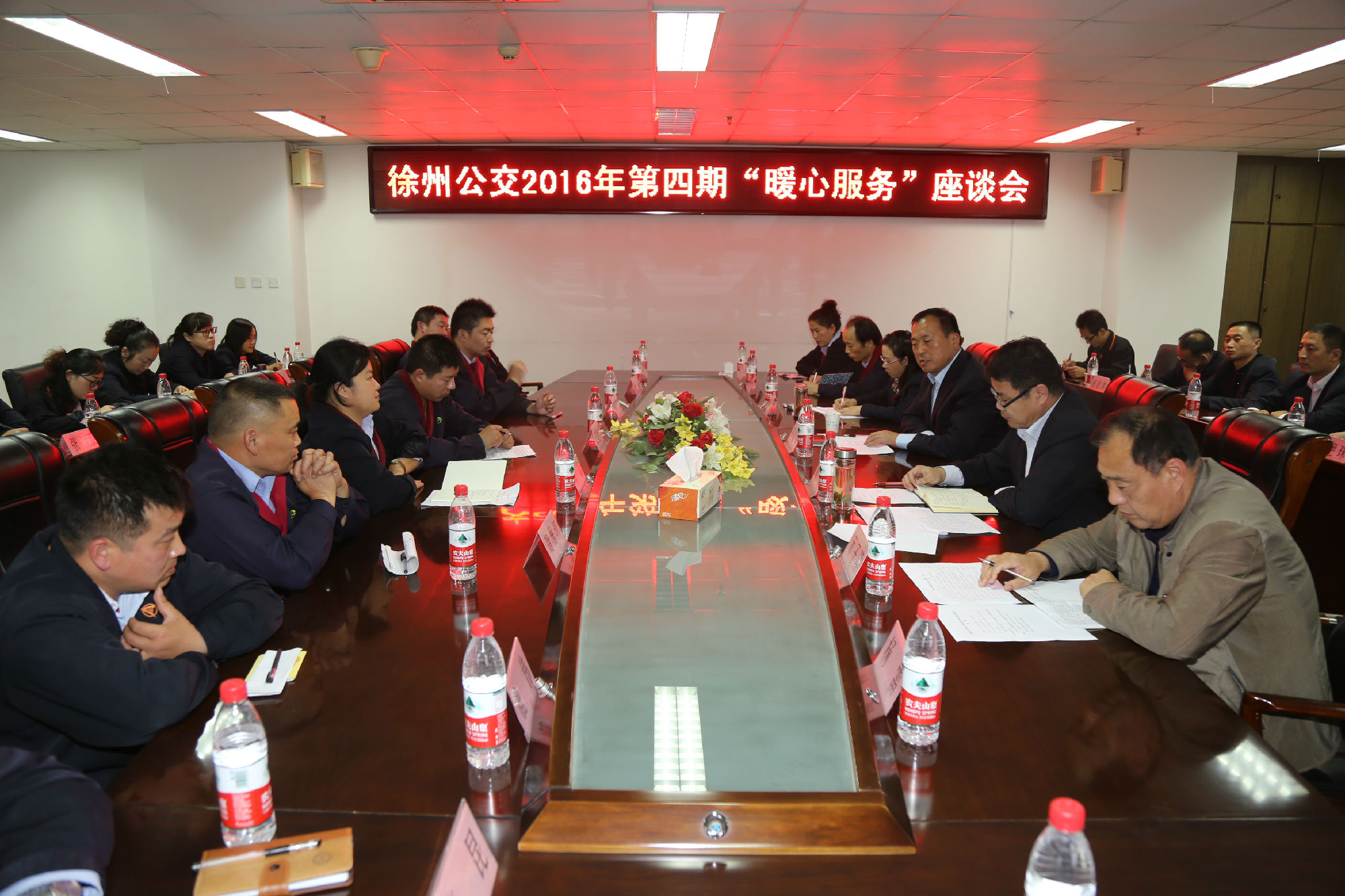 今年以來,全公司深入開展文明城市創(chuàng)建工作,各單位積極參與,強化員工培訓、加大檢查力度、制作公益廣告,營造濃厚的創(chuàng)建氛圍,服務質量也不斷提升,與去年同期相比,今年駕乘人員暖心服務受到媒體表揚、乘客來信來電表揚的數(shù)量大大增加。為進一步培樹典型,弘揚企業(yè)正能量,扎實做好創(chuàng)建工作,也為大家提供一個交流切磋的平臺,10月20日公司舉辦了第四期“暖心服務”座談會。