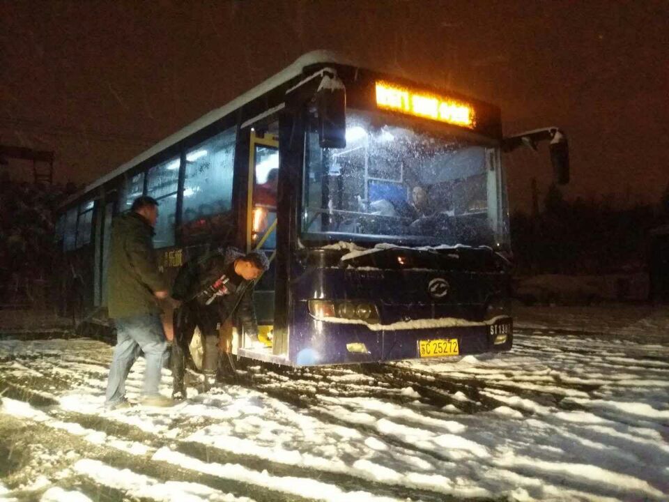晚間溫度再次下降,路面很快結(jié)冰,部分路段的路面像鏡子一樣,這給營運(yùn)工作帶來一定難度。然而,面對一張張著急的面孔,駕駛員們謹(jǐn)慎駕駛,安全平安地將每一位乘客送到目的地,而他們此時(shí)每運(yùn)轉(zhuǎn)一趟要比平時(shí)多出1個(gè)小時(shí)。