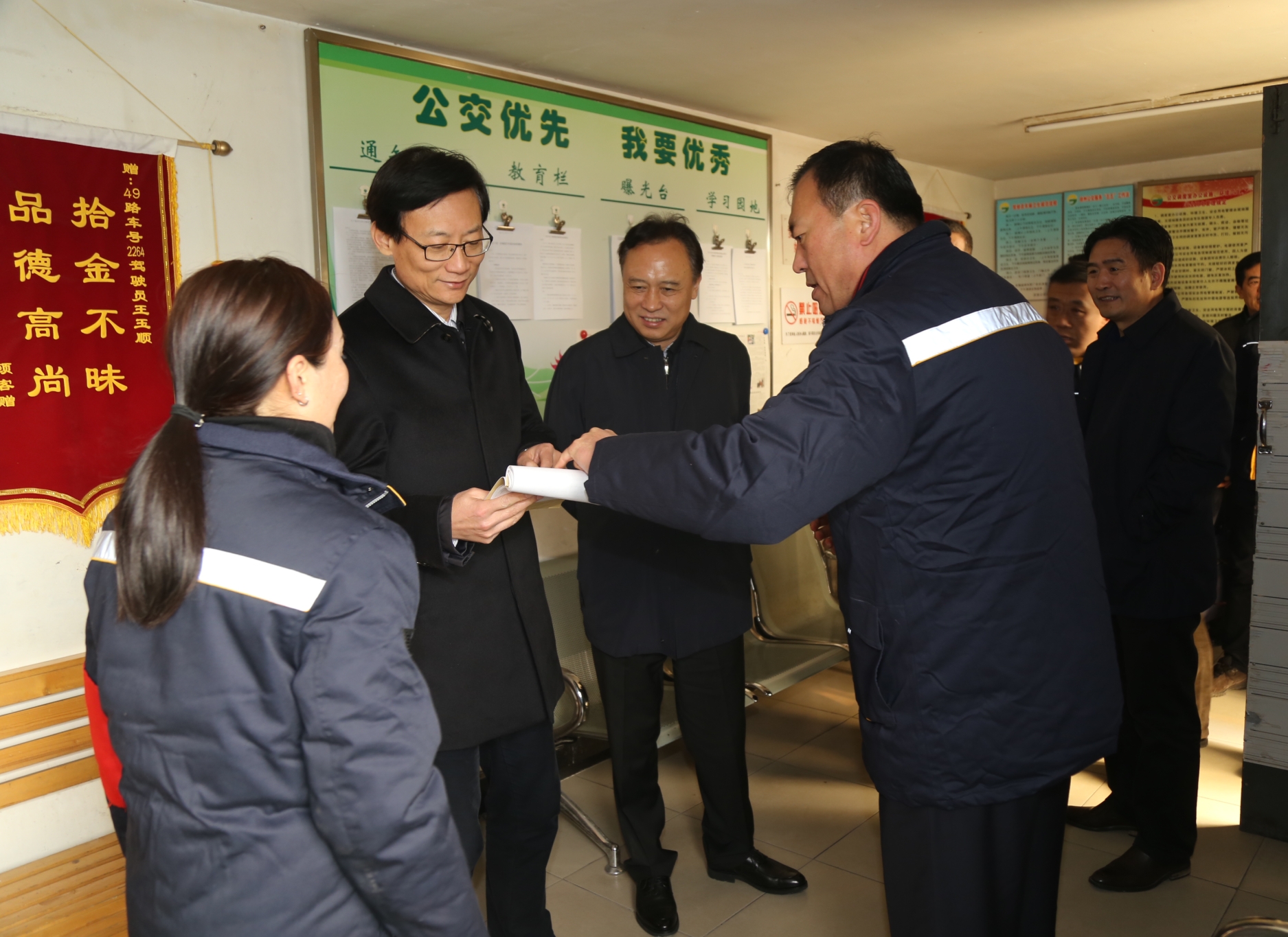 期間,杜紅軍就公交智能化建設(shè)、純電動公交車運營情況、車輛維修保養(yǎng)流程等工作向市領(lǐng)導(dǎo)作了詳細(xì)的匯報。趙立群對公交車輛發(fā)展、智能化建設(shè)等工作給予了肯定,并指出掌上公交和智能調(diào)度系統(tǒng)的建設(shè),實現(xiàn)了運營調(diào)度的可視化、智能化,使市民出行更加方便,希望公交公司不斷完善智能調(diào)度系統(tǒng),使公交運營更加規(guī)范有序,為乘客提供更加干凈、溫馨、方便、快捷的乘車環(huán)境。