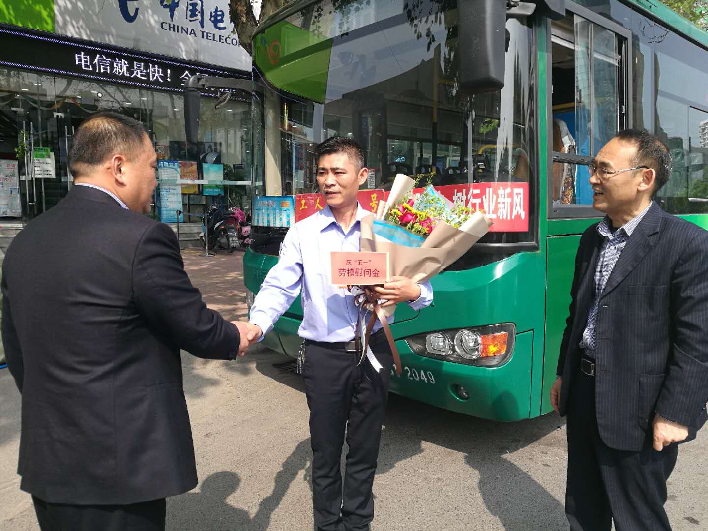 同時,蔣成彪和丁玉華帶隊分別看望慰問了10路楊鵬鵬、專1線邢運民、11路曹瑞國、19路閆翔、612路王超等5名省、市五一勞動獎?wù)孪冗M駕駛員。