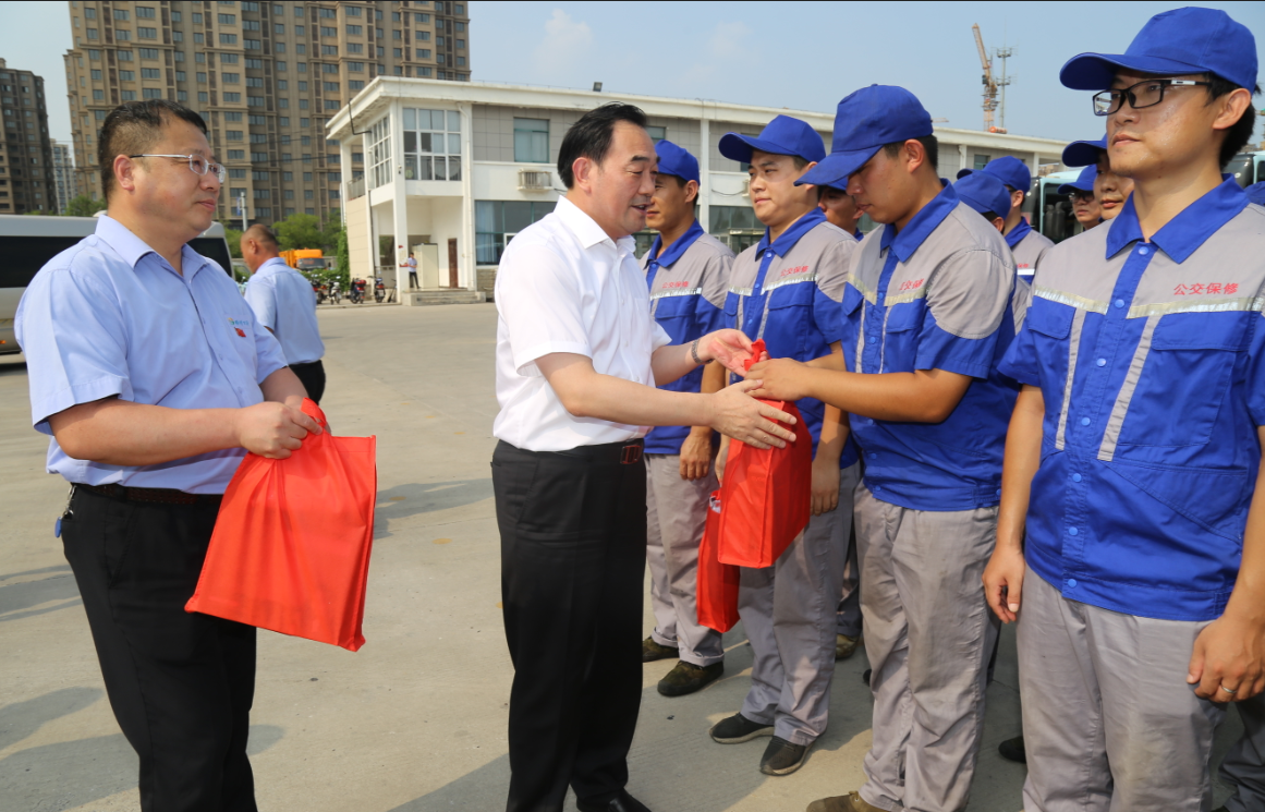 今夏持續(xù)高溫,酷熱難當(dāng),8月9日下午,徐州市委書記、市人大常委會(huì)主任周鐵根,市委常委、秘書長吳新福,市委常委、組織部長季培東,市人大常委副主任、市總工會(huì)主席束志明等一行,頂著炎炎烈日,冒著36攝氏度的高溫,來到公交公司郭莊車場看望慰問在高溫下依然堅(jiān)守崗位的公交員工,給大家送來清涼、帶來關(guān)心,并代表市委、市人大、市政府,向在酷暑天中依然奮戰(zhàn)一線、堅(jiān)守崗位,戰(zhàn)高溫斗酷暑的公交員工表示衷心感謝,感謝大家的辛勤勞動(dòng)和無私奉獻(xiàn)、吃苦耐勞的精神。云龍區(qū)區(qū)委、市交通運(yùn)輸局黨委書記、局長蔡前鋒,公交公司董事長、總經(jīng)理杜紅軍參加了慰問活動(dòng)。