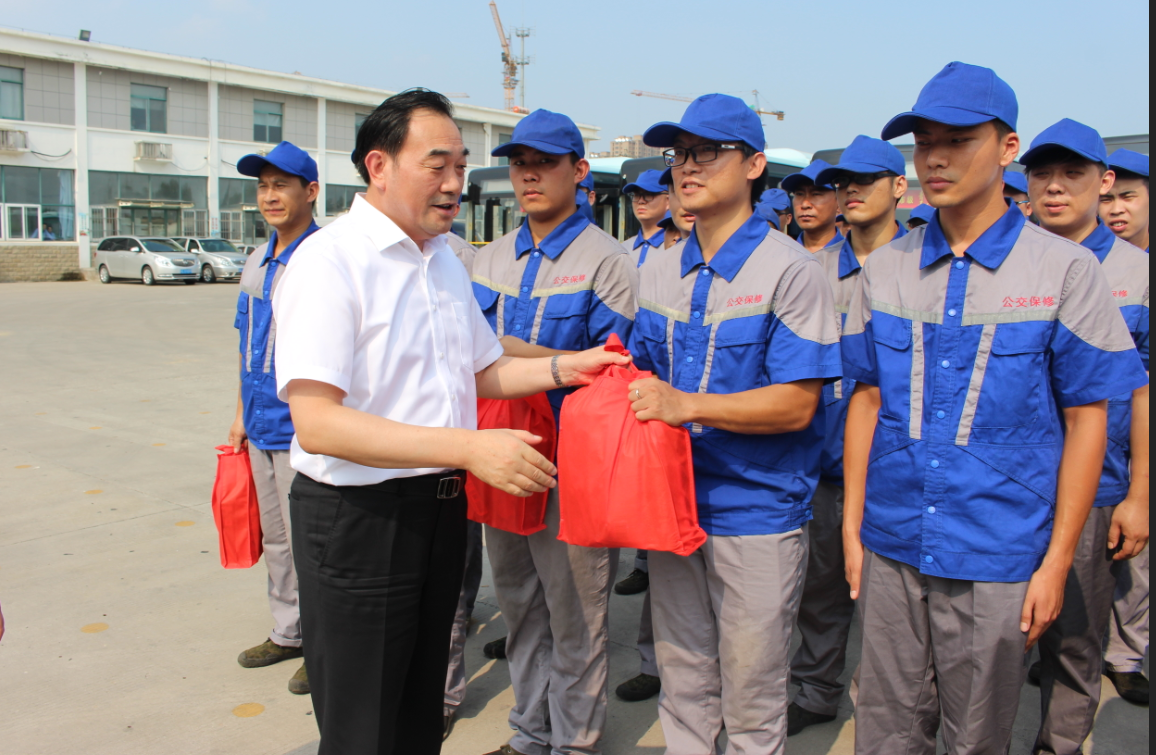 在烈日下的公交郭莊停車場,周鐵根書記看到堅(jiān)守崗位的公交員工們汗流浹背,親切地上前與公交駕駛員、修理人員等一線員工一一握手。“大家辛苦了!感謝你們!”他對(duì)廣大公交員工為保障全市人民高溫天氣正常出行所付出的辛勤勞動(dòng)表示充分肯定,又將洗發(fā)水、毛巾、肥皂等降暑物品,以及《安全生產(chǎn)知識(shí)職工普及讀本》等書一一送到公交員工手中,叮囑有關(guān)負(fù)責(zé)人,要多愛護(hù)、關(guān)心一線職工,切實(shí)做好防暑降溫措施,為公交員工創(chuàng)造好的工作條件,切實(shí)維護(hù)廣大職工的安康權(quán)益,確保高溫天里職工的身體健康和安全生產(chǎn),讓職工安全度夏、清涼度夏,真正感受到黨和政府的關(guān)懷、工會(huì)組織的關(guān)心和社會(huì)各界的關(guān)愛。他還關(guān)心地叮囑公交員工們要?jiǎng)谝萁Y(jié)合,做好高溫防護(hù),保重身體,杜絕疲勞駕駛,確保安全行車,并希望大家更好地堅(jiān)守崗位、服務(wù)群眾,為保障市民安全有序的出行環(huán)境,打造我市優(yōu)化營商環(huán)境、營造文明城市良好氛圍做出更大的貢獻(xiàn)。